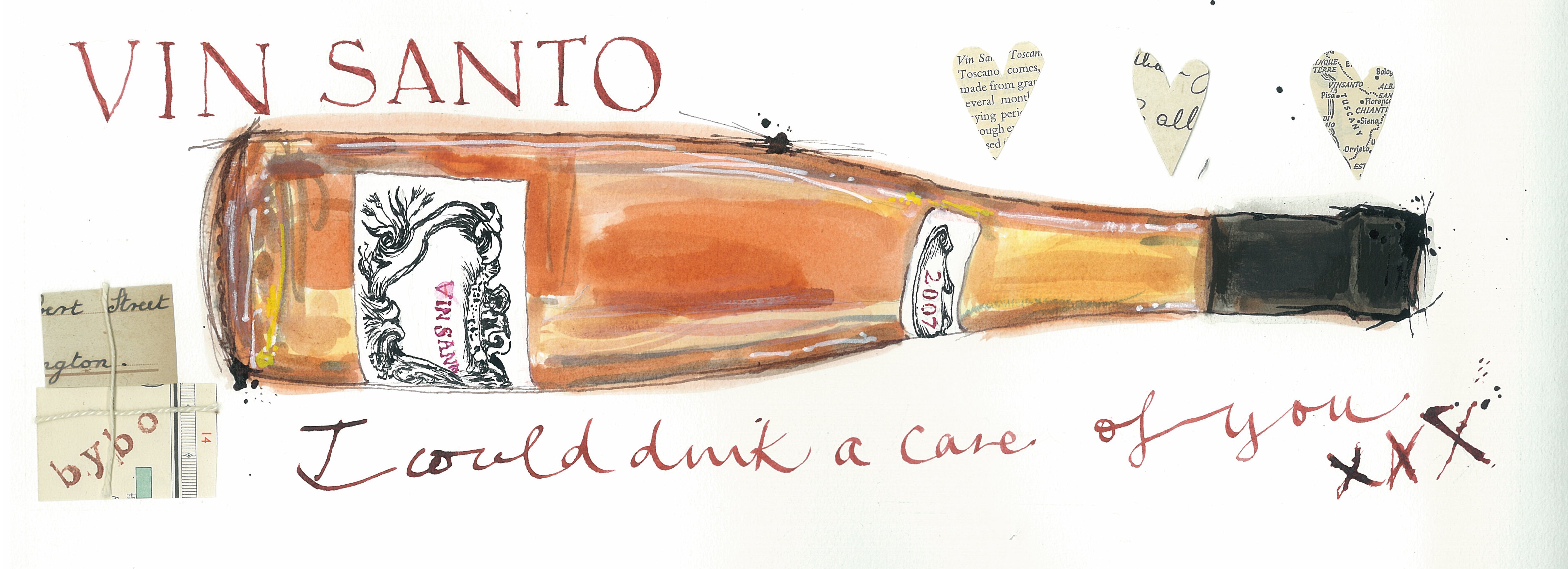 Finish off with a Vin Santo DOC, 2007, from Fattoria dei Barbi. This classic dessert wine from Tuscany is made from late harvested Trebbiano, Malvasia and Sangiovese grapes hung over wires in well-ventilated rooms and dried until well into the New Year. Pressed and fermented with natural yeasts around Eastertime – hence the name vin santo, literally “holy wine”- it is then aged in small barrels of oak or chestnut called caratelli. Barbi’s wonderful viscous, intense, aromatic, nectar goes perfectly with Cantucci or Cantuccini – traditional, Tuscan, almond biscotti – so don’t forget those as well . As Barry once said “Your Sweetness is my Weakness”.